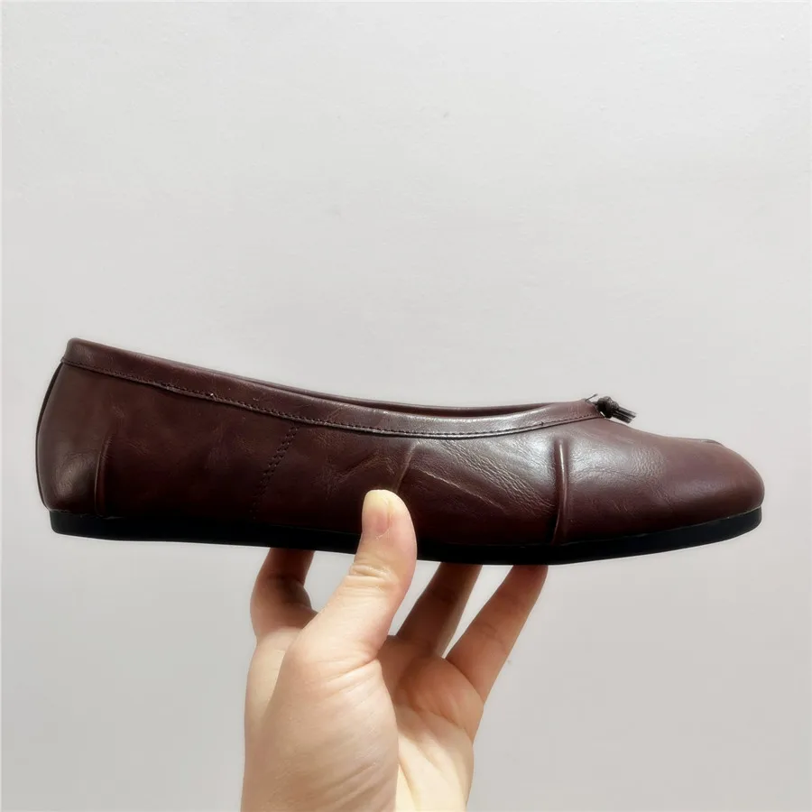 2025 New Pleated Women Ballet Flats Tabi Shoes Casual Slip-on Loafers Ladies Split Toe Leather Espadrilles Zapatillas Mujer