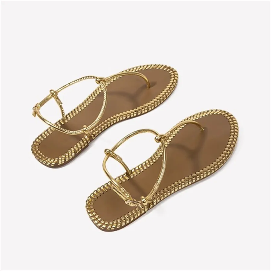 2025 New Summer Bohemian Flip Flops Women Flat Sandals Casual Vacation Beach Flats Gold Woven Gladiator Sandalias Mujer
