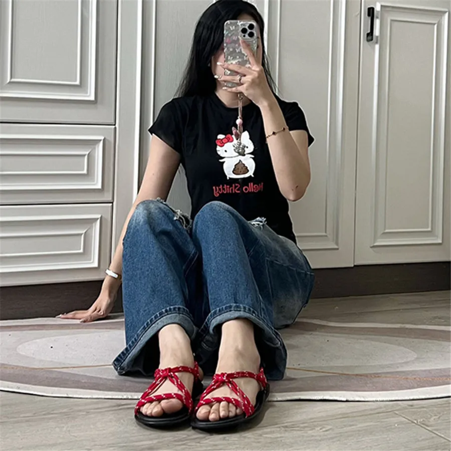 2025 New Summer Women Sandals Casual Flat Shoes Rope Cross-strap Beach Flats Leisure Sandalias Mujer Holiday Vacation Sandal