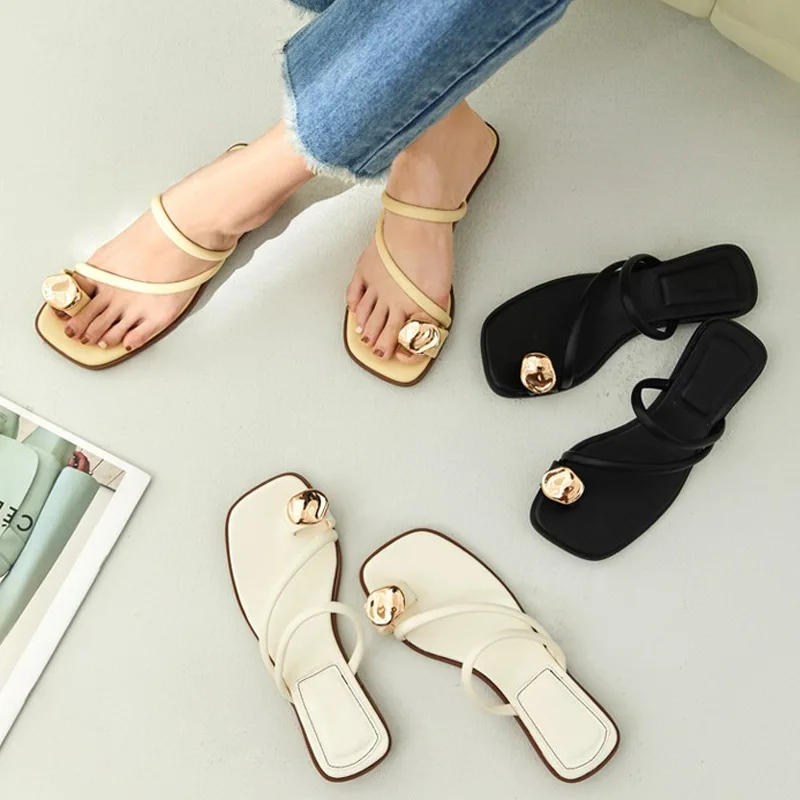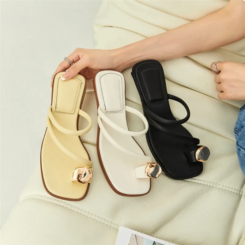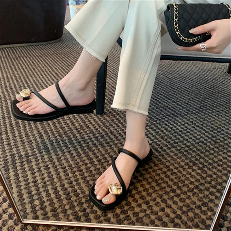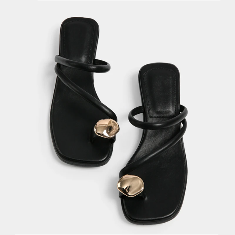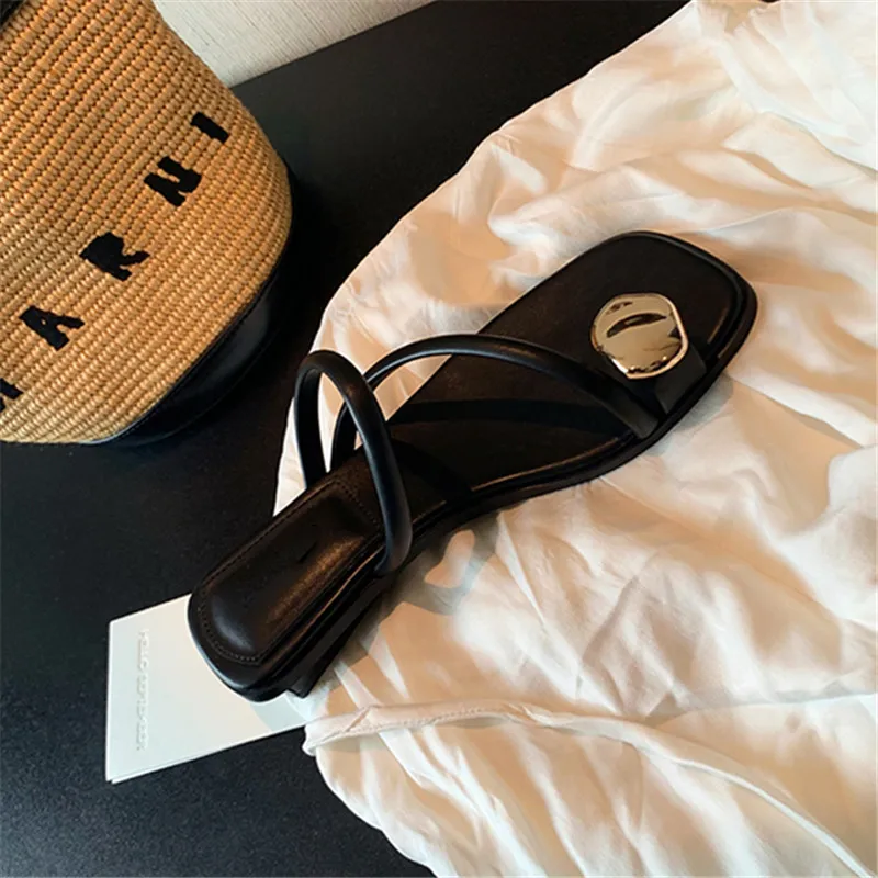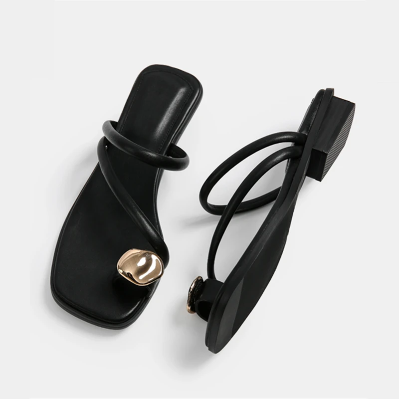 Black Women Slippers 2025 Summer Beach Slides Casual Flip Flops Ladies Chunky Low Heel Gladiator Sandals Leather Zapatos Mujer