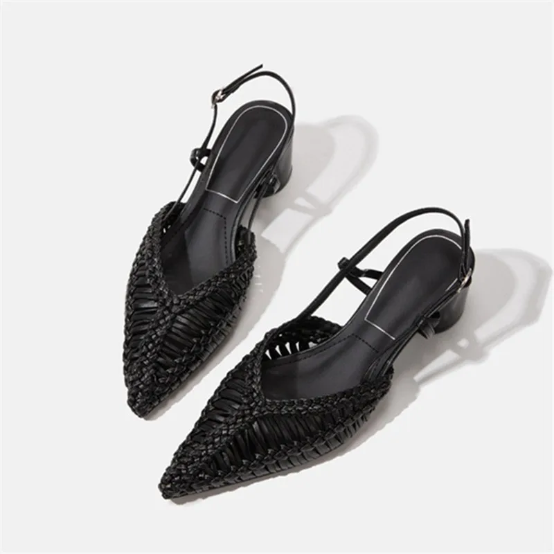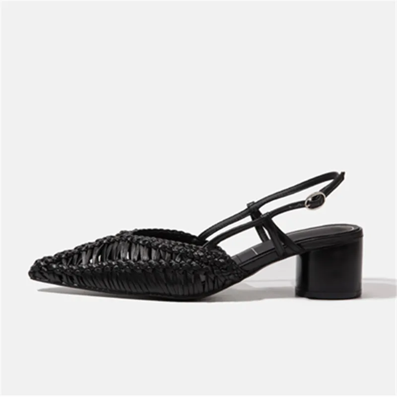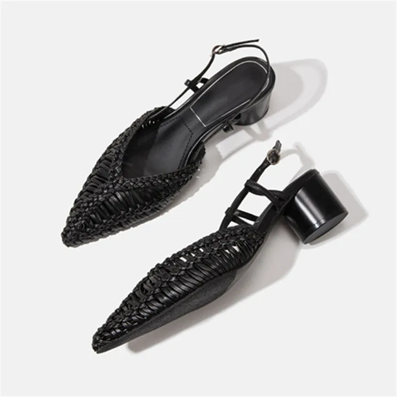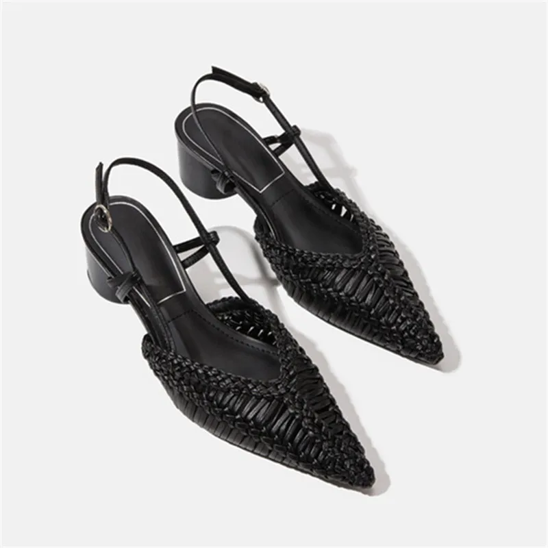 Braided Women’s Sandals Summer 2025 Pointed Toe Chunky High Heels Ladies Hollow Out Gladiator Sandalias Mujer Black Dress Pumps