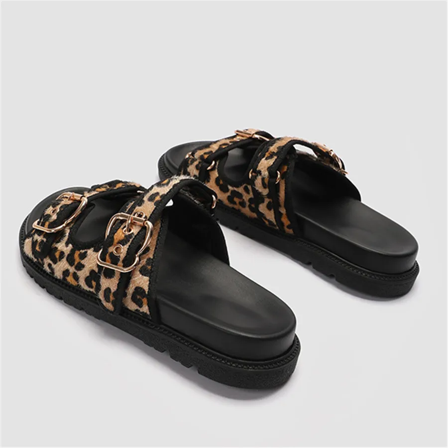 Summer Women Slippers Leopard Print Sandals Thick Sole Platform Shoes Woman 2025 Trend Buckles Ladies Beach Slides Big Size 43